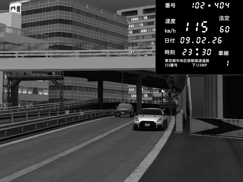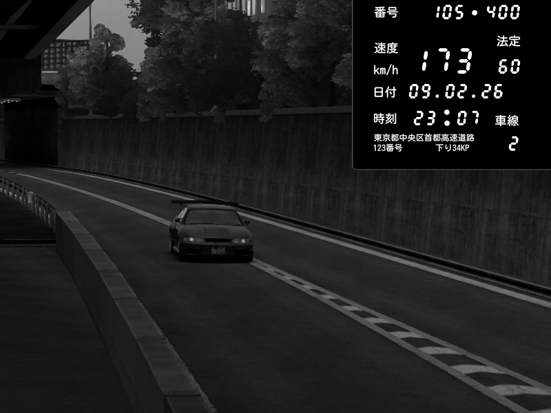 | 2026/02/09 23:08 | C1外回り 新富町 | 101 / 60 km/h | Nissan Skyline GTR R33 (S3 - Wangan) | CAPTURE |