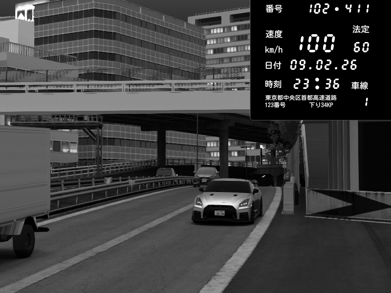 | 2026/02/09 23:36 | C1外回り 新富町 | 100 / 60 km/h | Nissan GT-R NISMO 2017 | CAPTURE |