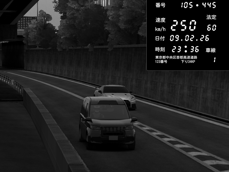 | 2026/02/09 23:36 | C1外回り 京橋 | 250 / 60 km/h | Nissan GT-R NISMO 2017 | CAPTURE |