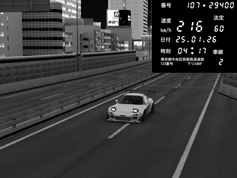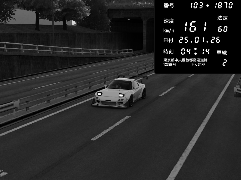 | 2026/01/25 04:22 | 4号下り 代々木 | 141 / 60 km/h | Mazda RX-7 FD3S FEED Afflux GT3 | CAPTURE |