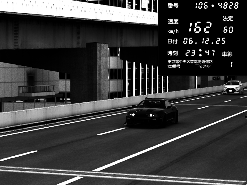 | 2025/12/06 23:45 | C1内回り 京橋 | 149 / 60 km/h | Toyota Supra MKIV Time Attack | CAPTURE |
