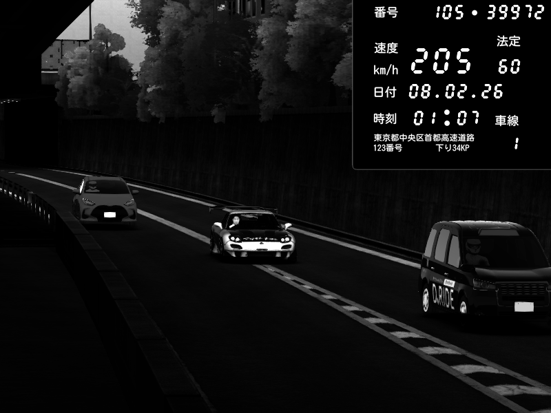 | 2026/02/08 00:54 | C1外回り 京橋 | 229 / 60 km/h | Mazda RX-7 FD3S RE Amemiya | CAPTURE |