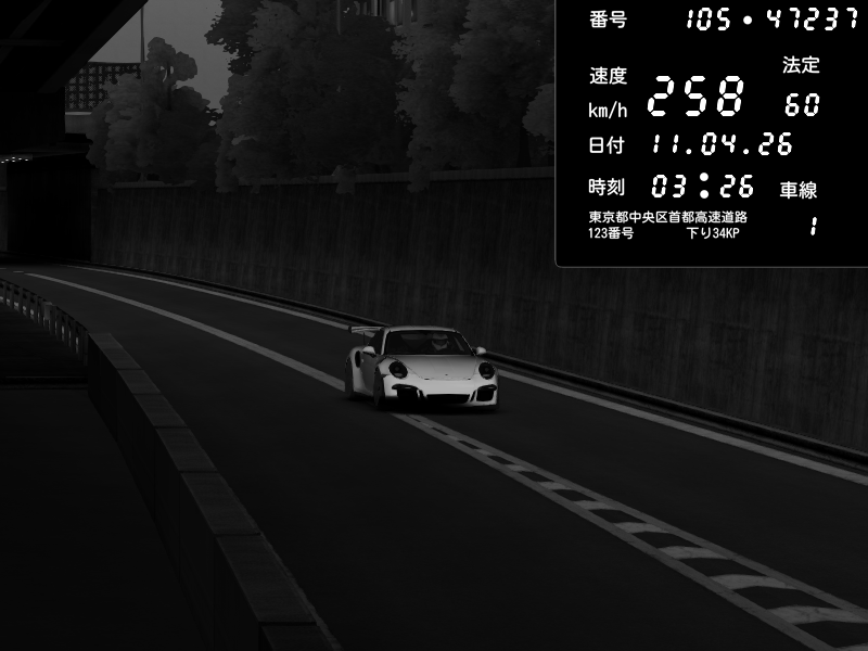 | 2026/04/11 03:26 | C1外回り 京橋 | 258 / 60 km/h | Porsche 911 GT3 RS | CAPTURE |