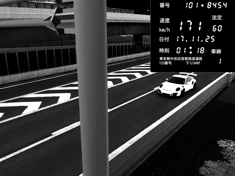 | 2025/11/17 01:18 | C1内回り 竹橋JCT | 171 / 60 km/h | Porsche 911 GT3 RS | CAPTURE |