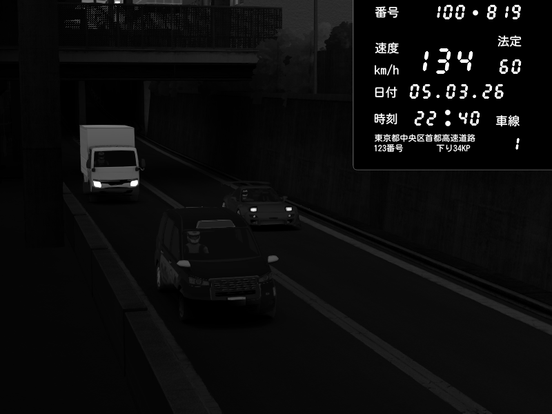 | 2026/03/05 22:50 | C1内回り 京橋 | 134 / 60 km/h | Mazda RX-7 FD3S RE Amemiya | CAPTURE |