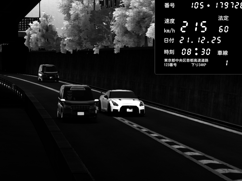 | 2025/12/21 08:30 | C1外回り 京橋 | 215 / 60 km/h | Nissan GT-R NISMO 2017 | CAPTURE |