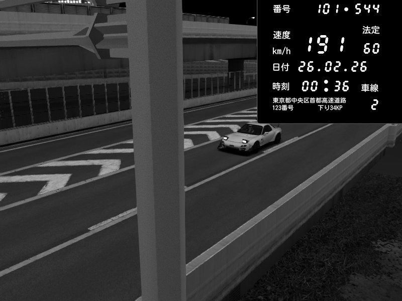 | 2026/02/26 00:36 | C1内回り 竹橋JCT | 191 / 60 km/h | Mazda RX-7 FD3S FEED Afflux GT3 | CAPTURE |