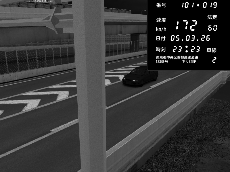 | 2026/03/05 23:23 | C1内回り 竹橋JCT | 172 / 60 km/h | Mitsubishi Lancer Evolution V Wangan Spec | CAPTURE |