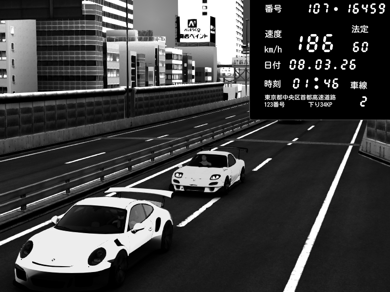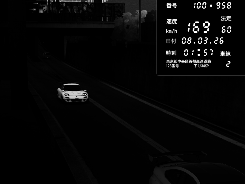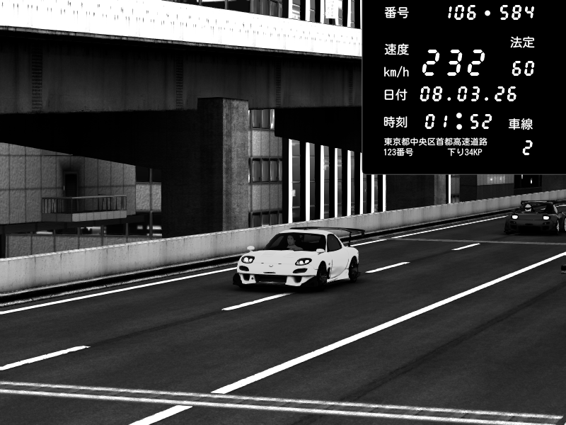 | 2026/03/08 01:57 | C1内回り 京橋 | 169 / 60 km/h | Mazda RX-7 FD3S RE Amemiya | CAPTURE |
