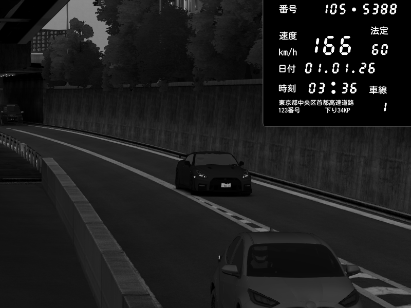 | 2026/01/01 03:49 | C1外回り 新富町 | 121 / 60 km/h | Nissan GT-R NISMO 2017 | CAPTURE |