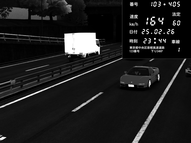 | 2026/02/25 23:44 | C1内回り 銀座 | 164 / 60 km/h | Honda NSX [NA1] PVLSX | CAPTURE |