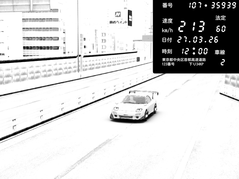 | 2026/03/27 12:08 | C1内回り 竹橋JCT | 182 / 60 km/h | Mazda RX-7 FD3S RE Amemiya | CAPTURE |