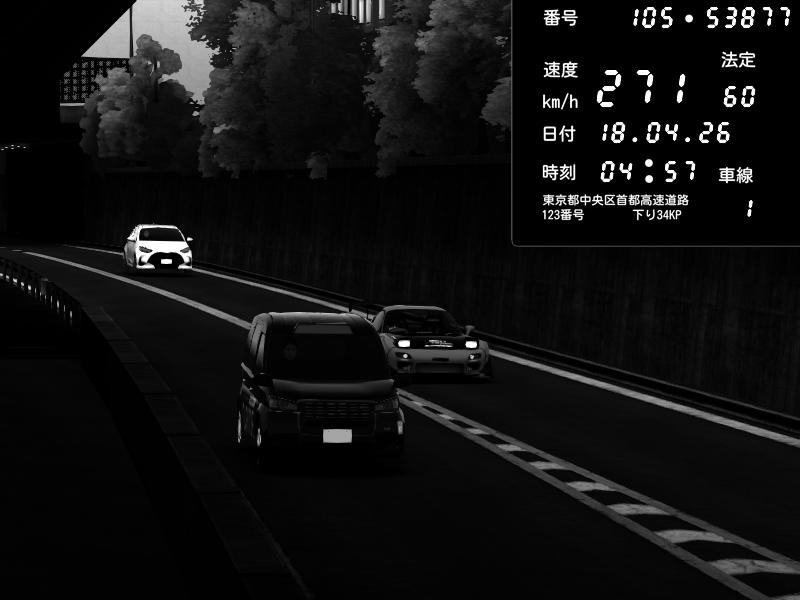 | 2026/04/18 04:57 | C1外回り 京橋 | 271 / 60 km/h | Mazda RX-7 FD3S FEED Afflux GT3 | CAPTURE |