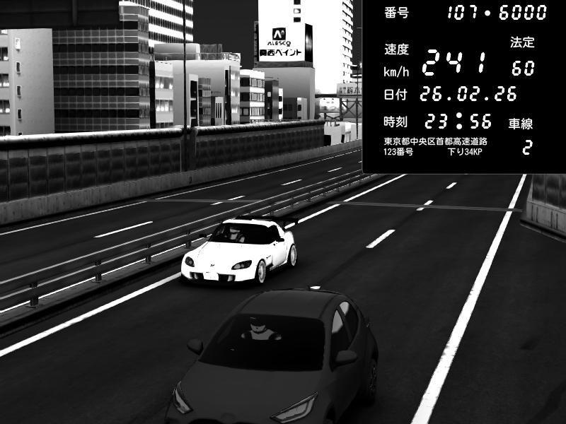 | 2026/02/26 23:55 | C1外回り 京橋 | 240 / 60 km/h | Honda S2000 (AP2 - Legendary) | CAPTURE |