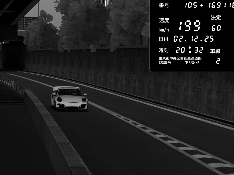 | 2025/12/02 20:32 | C1外回り 京橋 | 199 / 60 km/h | Porsche 911 GT3 RS | CAPTURE |