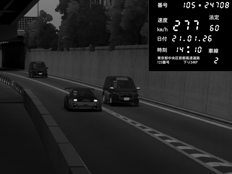 | 2026/01/21 14:10 | C1外回り 京橋 | 277 / 60 km/h | Mazda RX-7 FD3S FEED Afflux GT3 | CAPTURE |