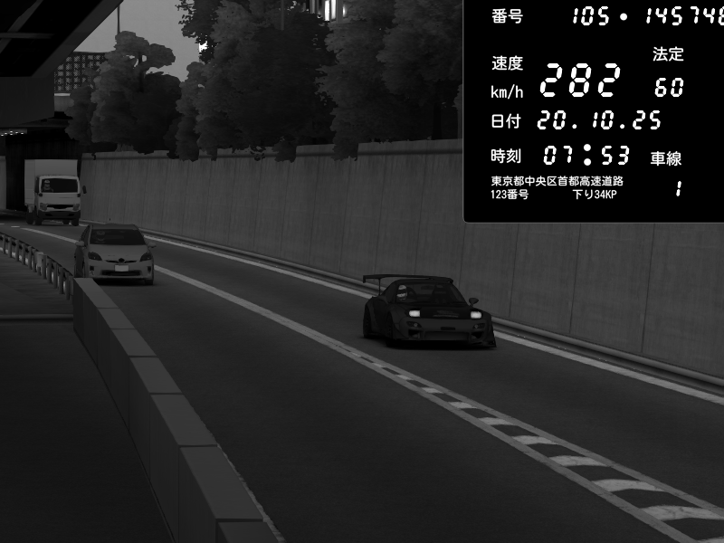 2025/10/20 07:53 | C1外回り 京橋 | 282 / 60 km/h | Mazda RX-7 FD3S FEED Afflux GT3 | CAPTURE |