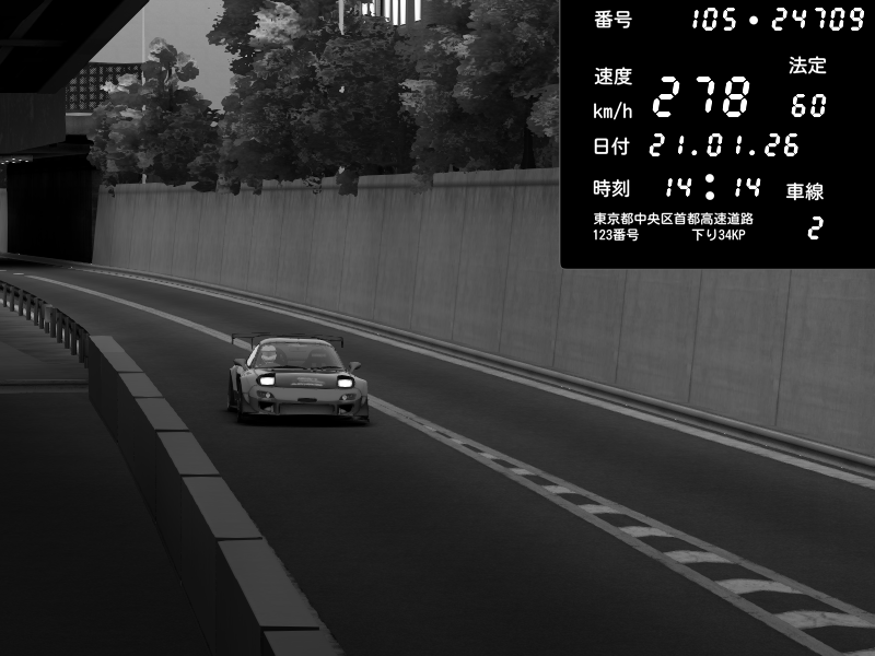 | 2026/01/21 14:14 | C1外回り 京橋 | 278 / 60 km/h | Mazda RX-7 FD3S FEED Afflux GT3 | CAPTURE |