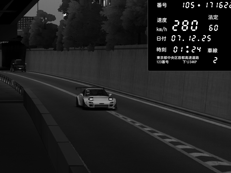| 2025/12/07 01:24 | C1外回り 京橋 | 280 / 60 km/h | Mazda RX-7 FD3S FEED Afflux GT3 | CAPTURE |