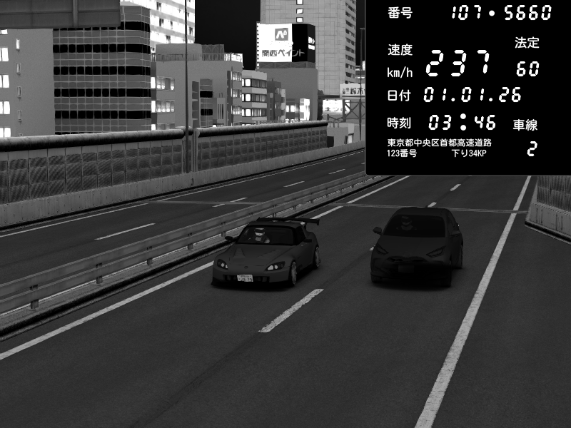 | 2026/01/01 03:55 | C1外回り 新富町 | 133 / 60 km/h | Honda S2000 (AP2 - Legendary) | CAPTURE |