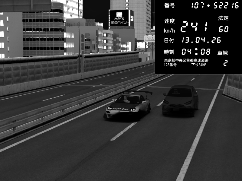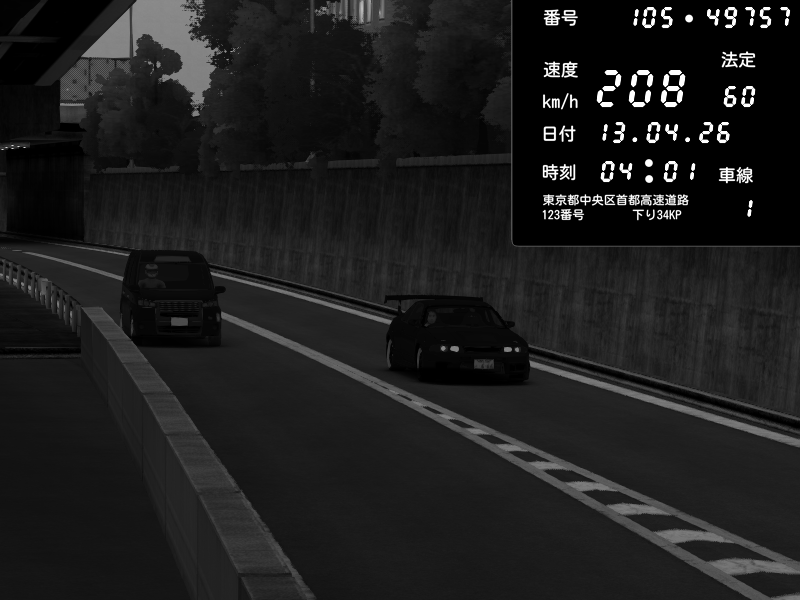 | 2026/04/13 04:01 | C1外回り 京橋 | 208 / 60 km/h | Nissan Skyline GTR R33 (S3 - Wangan) | CAPTURE |