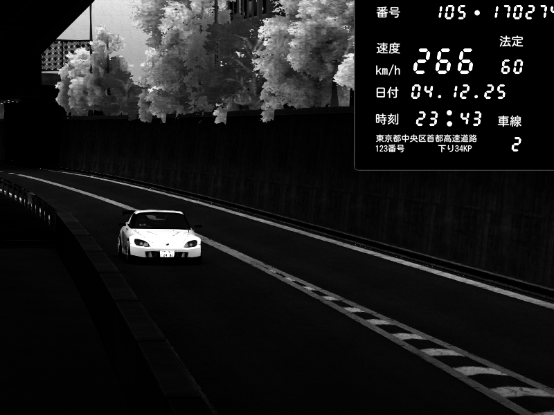 | 2025/12/04 23:43 | C1外回り 京橋 | 266 / 60 km/h | Honda S2000 (AP2 - Legendary) | CAPTURE |