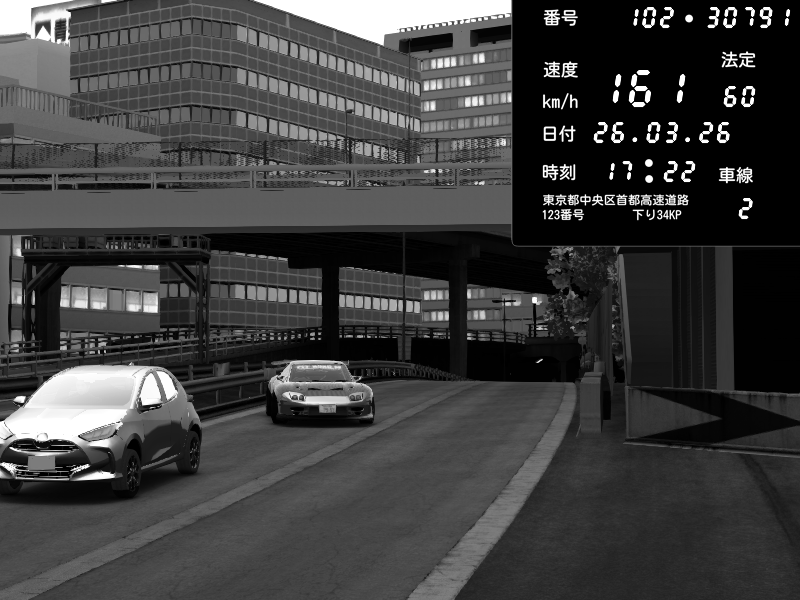 | 2026/03/26 17:18 | C1外回り 京橋 | 190 / 60 km/h | Pit Road M - Mitsubishi GTO Twin Turbo | CAPTURE |