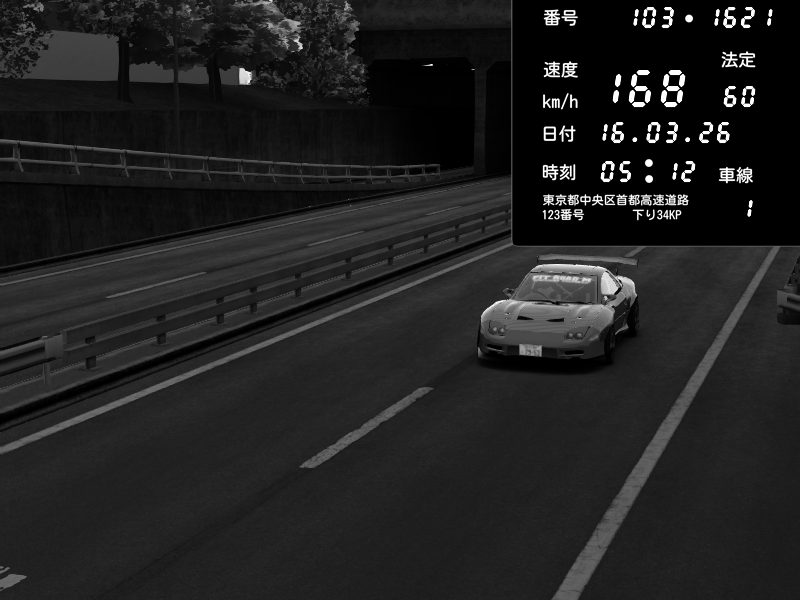 | 2026/03/16 05:12 | C1内回り 京橋 | 115 / 60 km/h | Pit Road M - Mitsubishi GTO Twin Turbo | CAPTURE |