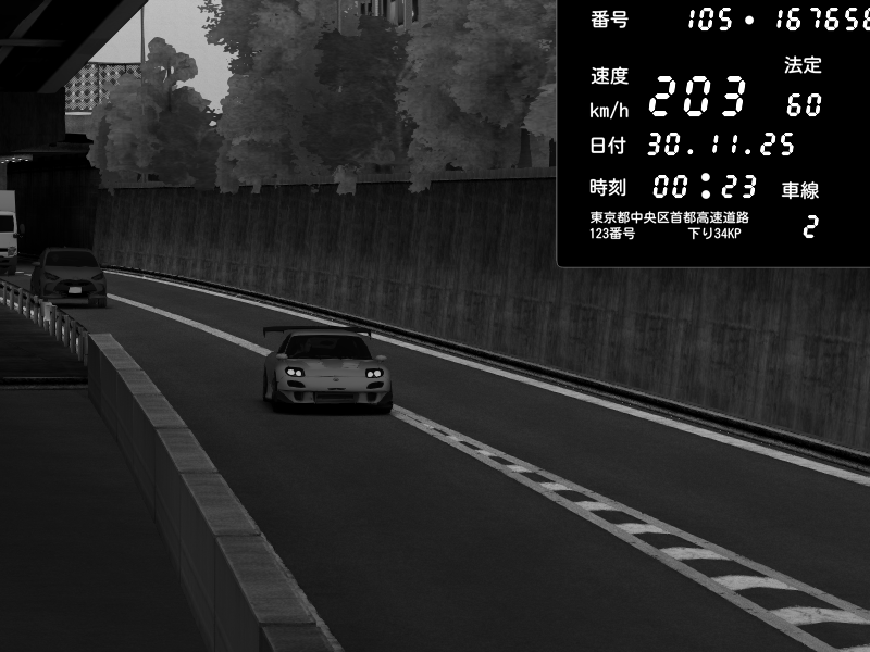 | 2025/11/30 00:23 | C1外回り 京橋 | 203 / 60 km/h | Mazda RX-7 FD3S RE Amemiya | CAPTURE |