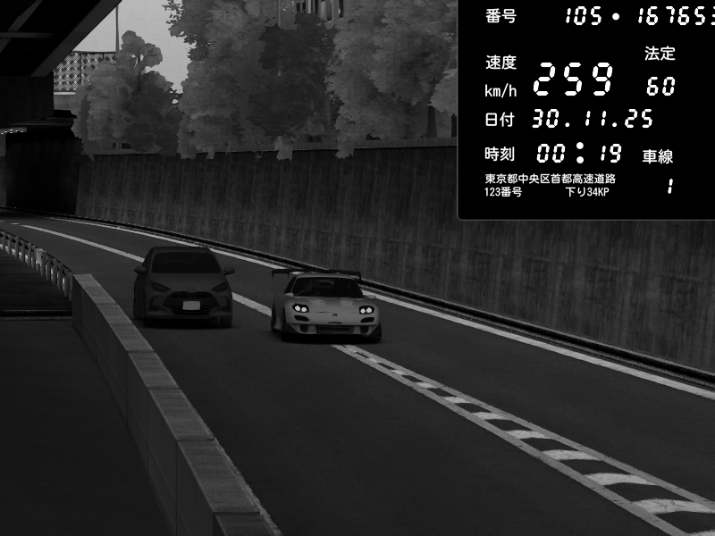 | 2025/11/30 00:19 | C1外回り 京橋 | 259 / 60 km/h | Mazda RX-7 FD3S RE Amemiya | CAPTURE |