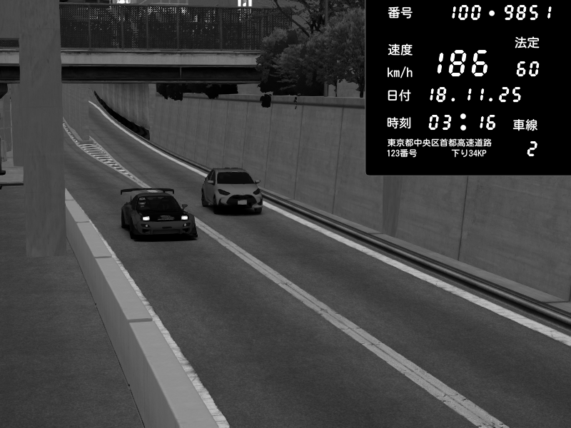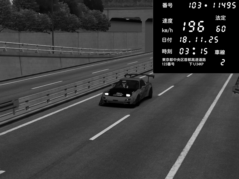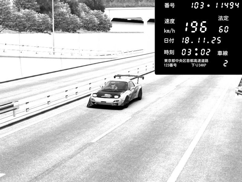 | 2025/11/18 03:17 | C1内回り 竹橋JCT | 182 / 60 km/h | Mazda RX-7 FD3S FEED Afflux GT3 | CAPTURE |