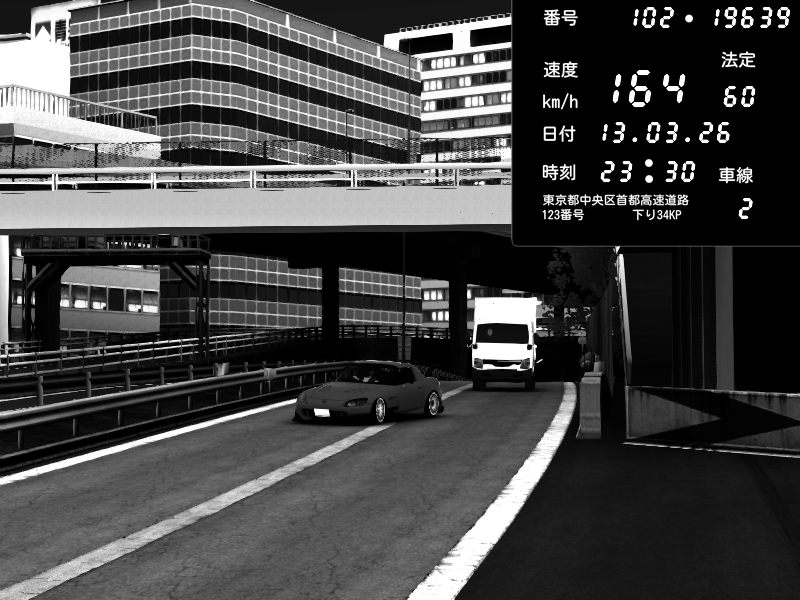 | 2026/03/13 23:30 | C1外回り 新富町 | 164 / 60 km/h | Honda S2000 (AP2 - Legendary) | CAPTURE |