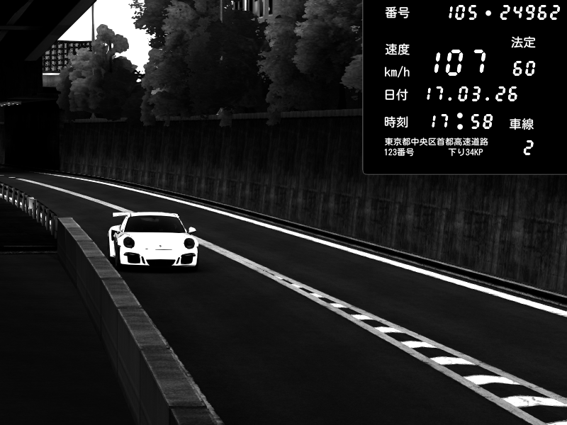 | 2026/03/17 17:58 | C1外回り 京橋 | 107 / 60 km/h | Porsche 911 GT3 RS | CAPTURE |