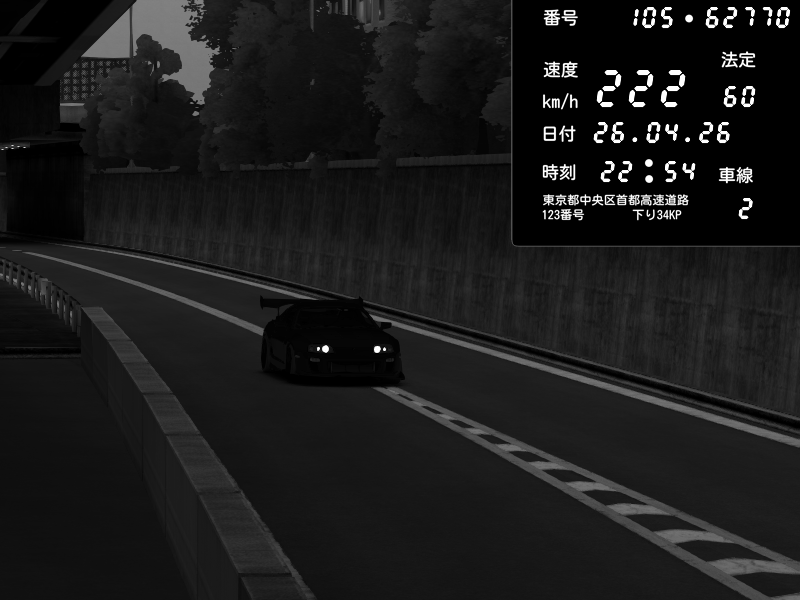 | 2026/04/26 22:54 | C1外回り 京橋 | 222 / 60 km/h | Toyota Supra MKIV Time Attack | CAPTURE |
