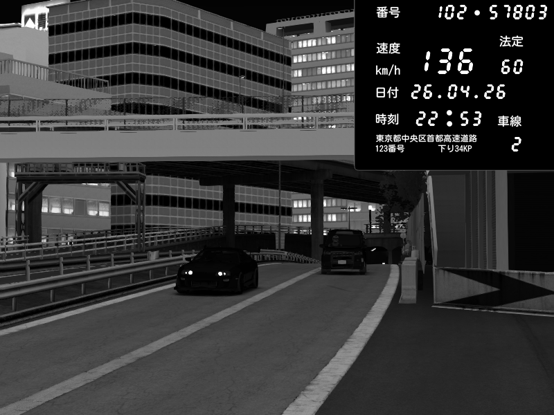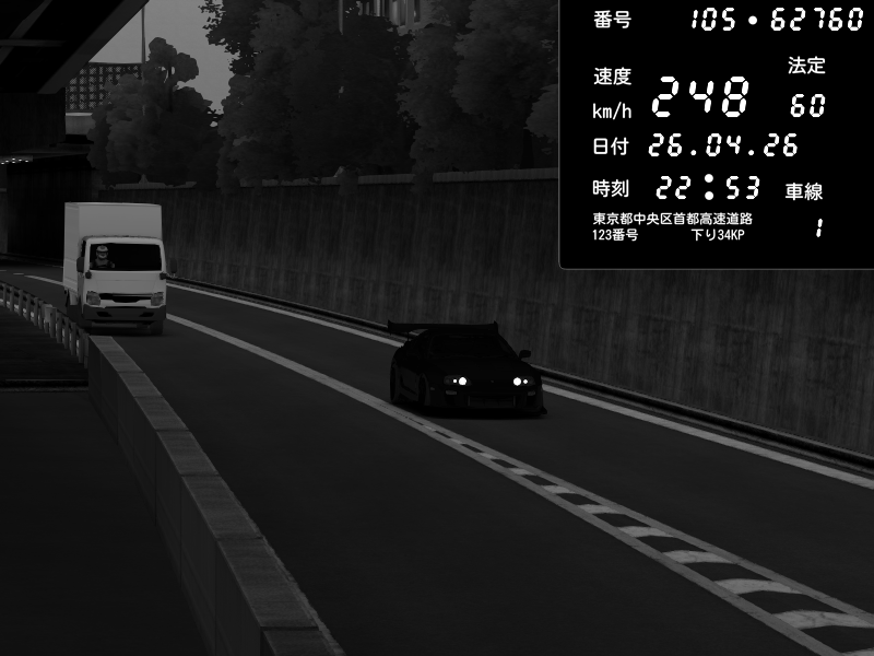 | 2026/04/26 22:53 | C1外回り 新富町 | 136 / 60 km/h | Toyota Supra MKIV Time Attack | CAPTURE |