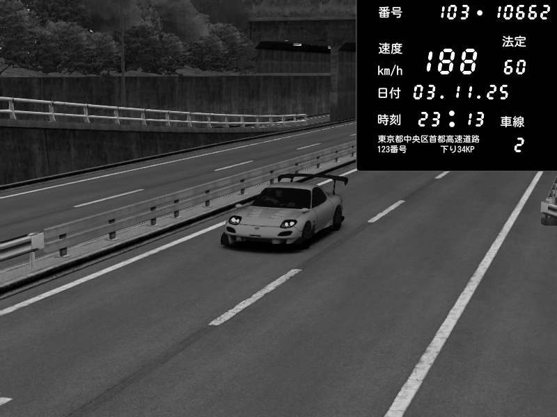 | 2025/11/03 23:13 | C1内回り 銀座 | 188 / 60 km/h | Mazda RX-7 FD3S RE Amemiya | CAPTURE |