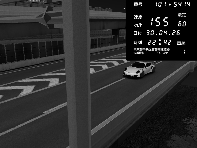 | 2026/04/30 22:42 | C1内回り 竹橋JCT | 155 / 60 km/h | Porsche 911 GT3 RS | CAPTURE |