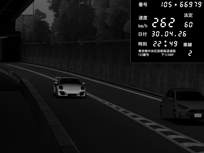 | 2026/04/30 22:49 | C1外回り 京橋 | 262 / 60 km/h | Porsche 911 GT3 RS | CAPTURE |