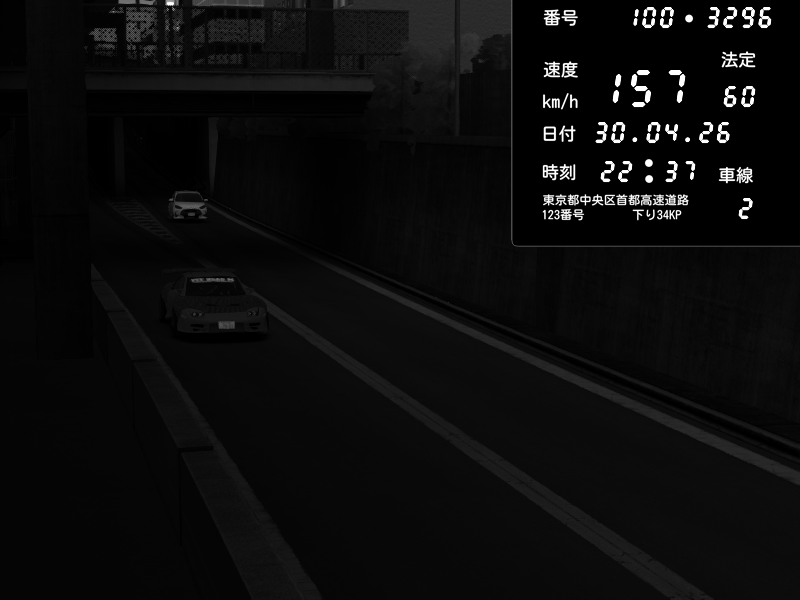 | 2026/04/30 22:37 | C1内回り 京橋 | 157 / 60 km/h | Pit Road M - Mitsubishi GTO Twin Turbo | CAPTURE |