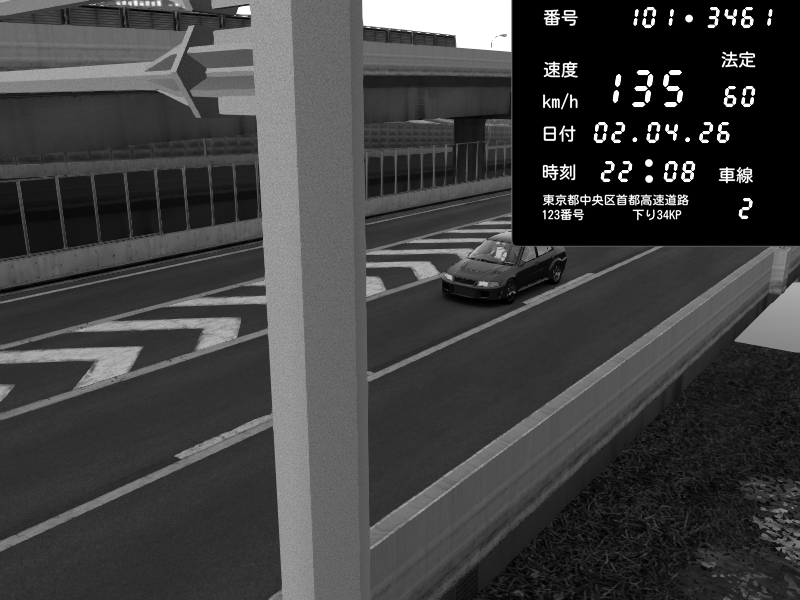 | 2026/04/02 22:08 | C1内回り 竹橋JCT | 135 / 60 km/h | Mitsubishi Lancer Evolution V Wangan Spec | CAPTURE |