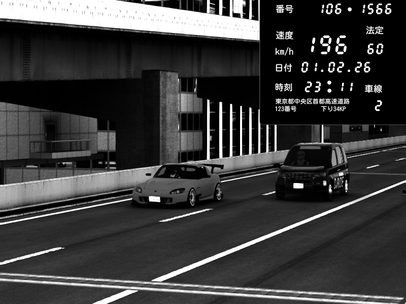 | 2026/02/01 23:07 | C1外回り 京橋 | 196 / 60 km/h | Honda S2000 (AP2 - Legendary) | CAPTURE |
