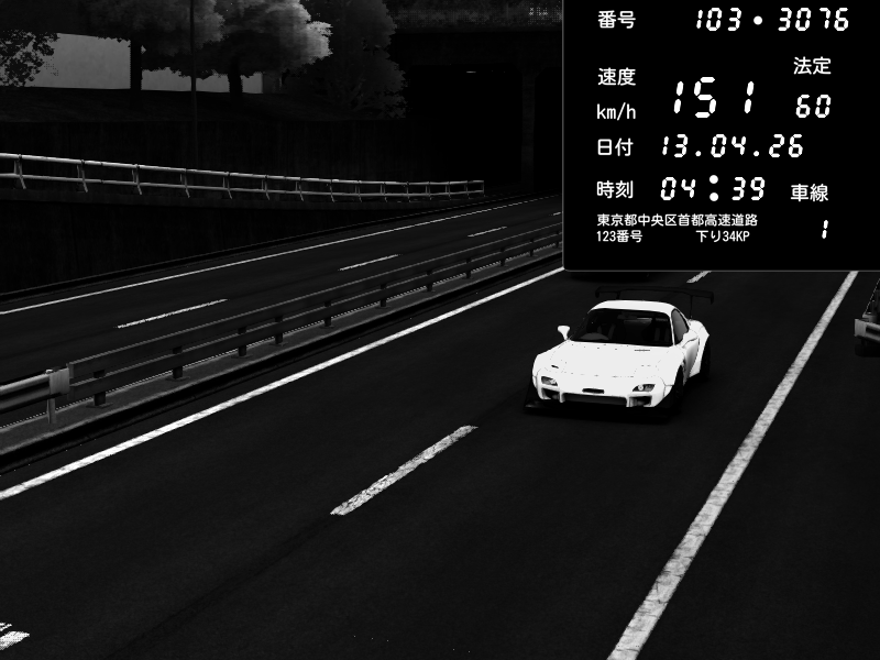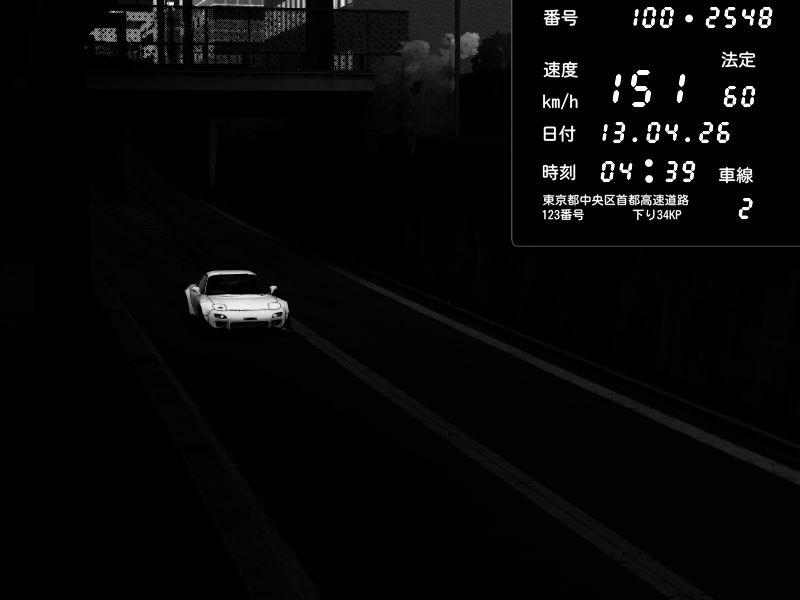 | 2026/04/13 04:39 | C1内回り 銀座 | 151 / 60 km/h | Mazda RX-7 FD3S FEED Afflux GT3 | CAPTURE |