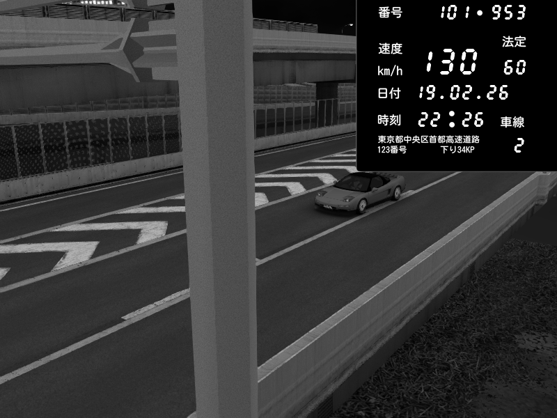 | 2026/02/19 22:26 | C1内回り 竹橋JCT | 130 / 60 km/h | Honda NSX [NA1] PVLSX | CAPTURE |