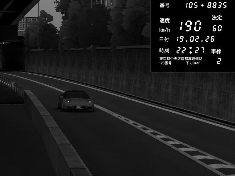 | 2026/02/19 22:48 | 4号下り 代々木 | 115 / 60 km/h | Nissan Skyline GTR R33 (S3 - Wangan) | CAPTURE |