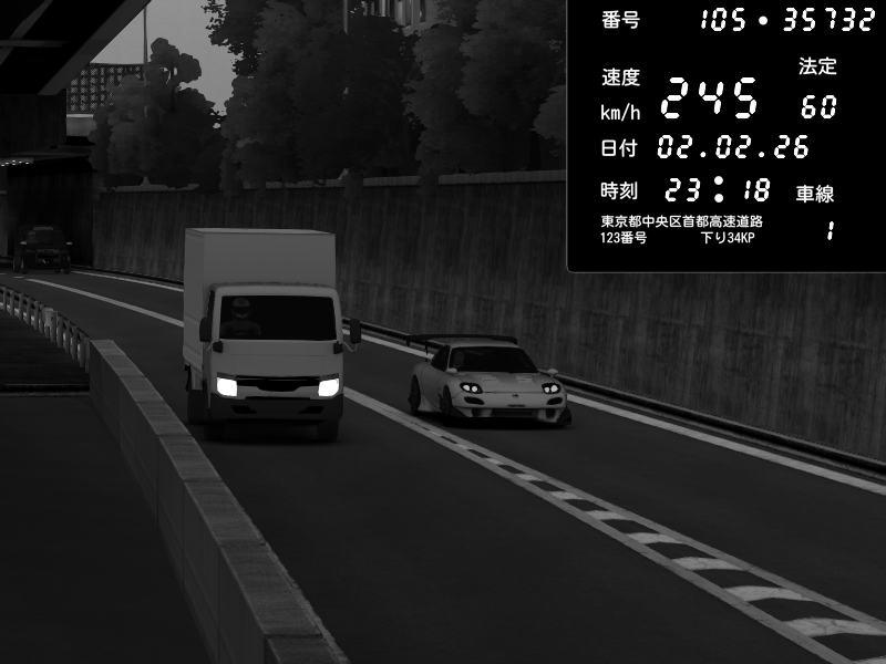 | 2026/02/02 23:08 | C1外回り 新富町 | 141 / 60 km/h | Mazda RX-7 FD3S RE Amemiya | CAPTURE |