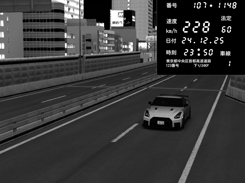 | 2025/12/24 23:50 | C1外回り 芝公園 | 228 / 60 km/h | Nissan GT-R NISMO 2017 | CAPTURE |