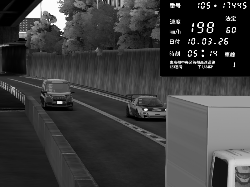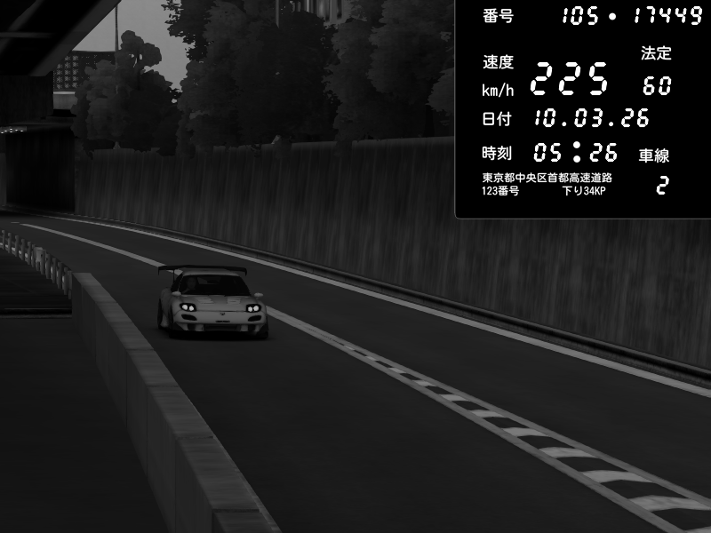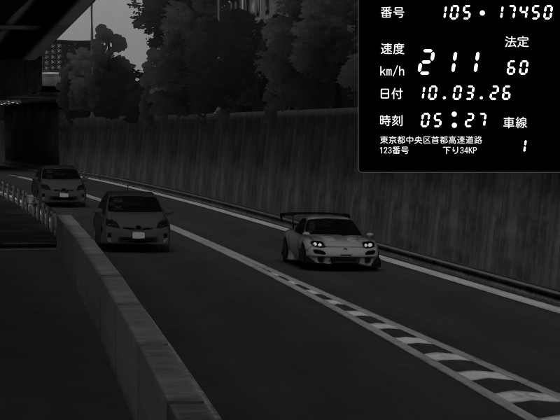 | 2026/03/10 05:27 | C1外回り 京橋 | 211 / 60 km/h | Mazda RX-7 FD3S RE Amemiya | CAPTURE |