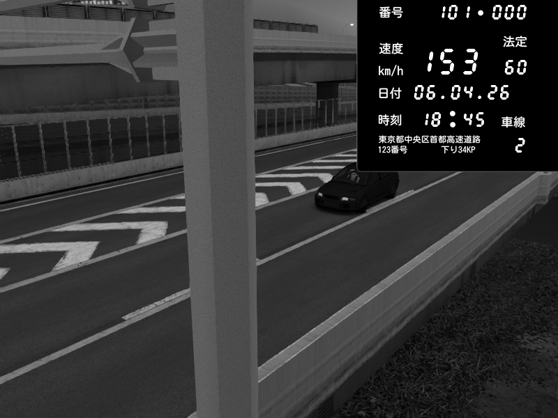 | 2026/02/11 20:34 | C1内回り 竹橋JCT | 153 / 60 km/h | Mitsubishi Lancer Evolution V Wangan Spec | CAPTURE |