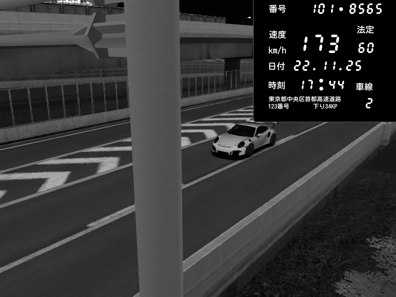 | 2025/11/22 17:44 | C1内回り 竹橋JCT | 173 / 60 km/h | Porsche 911 GT3 RS | CAPTURE |