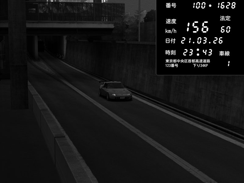 | 2026/03/13 20:32 | C1外回り 芝公園 | 215 / 60 km/h | Honda S2000 Turbo GT1 Amuse (AP1) | CAPTURE |